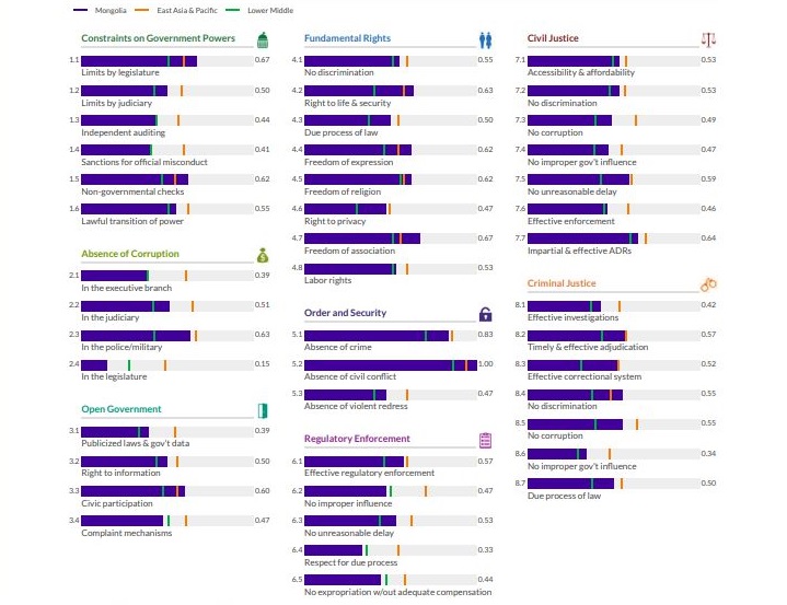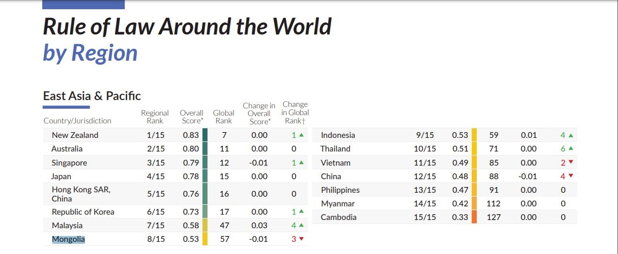 MONGOLIA RANKED 57 OUT OF 128 COUNTRIES ON RULE OF LAW