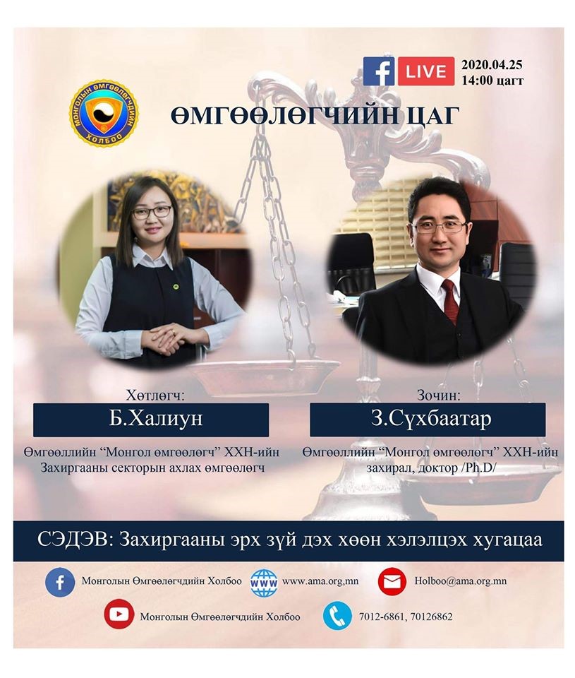 Монголын Өмгөөлөгчдийн Холбоо болон Нийслэлийн Иргэдийн Төлөөлөгчдийн Хурлаас хамтран зохион байгуулж буй "Өмгөөлөгчийн цаг" онлайн нэвтрүүлгийн 2020 оны 4 дүгээр сарын 25-ны өдрийн дугаарт Өмгөөллийн "Монгол өмгөөлөгч" ХХН-ийн захирал, доктор (Ph.D) З.Сүхбаатар "Захиргааны эрх зүй дэх хөөн хэлэлцэх хугацаа" сэдвээр харилцан ярилцлаа. Тус нэвтрүүлгийг Монголын Өмгөөлөгчдийн Холбооны холбогдох цахим хуудаснаас хүлээн авч үзээрэй.