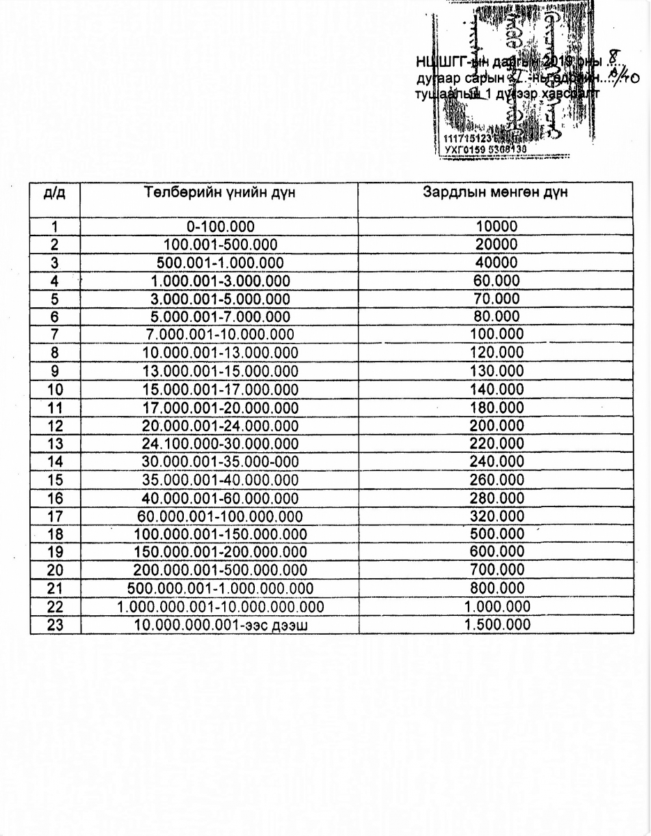 НИЙСЛЭЛИЙН ШҮҮХИЙН ШИЙДВЭР ГҮЙЦЭТГЭХ ГАЗРЫН ДАРГЫН ТУШААЛААР ШИЙДВЭР ГҮЙЦЭТГЭХ АЖИЛЛАГААНЫ ЗАРДЛЫН ХЭМЖЭЭ ШИНЭЧЛЭН ТОГТООГДЛОО