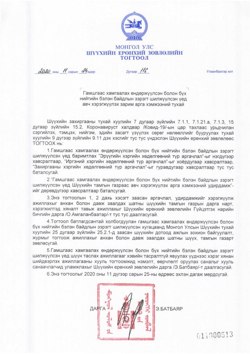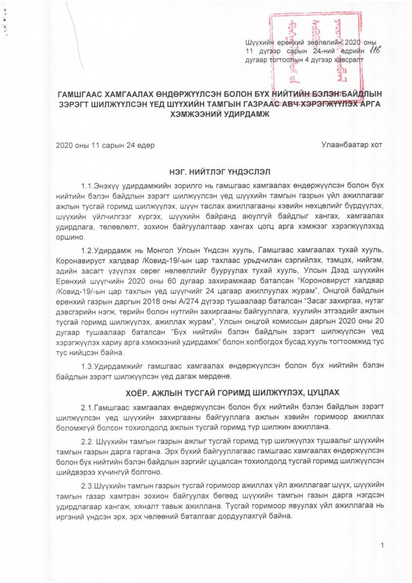 ГАМШГААС ХАМГААЛАХ ӨНДӨРЖҮҮЛСЭН БОЛОН БҮХ НИЙТИЙН БЭЛЭН БАЙДЛЫН ЗЭРЭГТ ШИЛЖҮҮЛСЭН ҮЕД ШҮҮХИЙН ТАМГЫН ГАЗРААС АВЧ ХЭРЭГЖҮҮЛЭХ АРГА ХЭМЖЭЭНИЙ УДИРДАМЖИЙГ БАТАЛЛАА